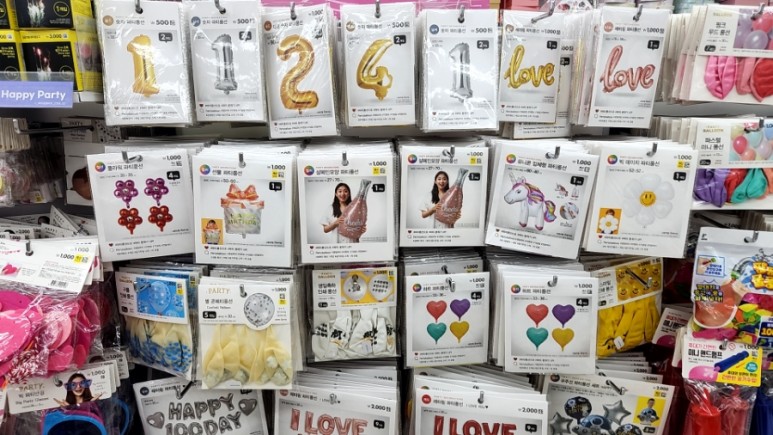 일회용 풍선으로는 숫자, 동물, 별, 이니셜, 하트 등